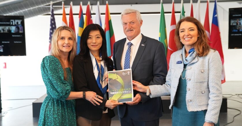 The Japanese version of the Global Packaging Design for Recycling Guide was officially launched at the second WPO Board Meeting, in Cape Town, South Africa, with the participation of WPO Presidents, Pierre Pienaar (outgoing) and Luciana Pellegrino (incoming, WPO VP Sustainability & Save Food, Nerida Kelton, and the representative of JPI (Japan Packaging Institute), Hiroko Akieda.